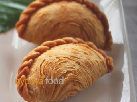 Baked Curry Puff Baked Curry Puff : Place the curry puff filling (must be at room temperature) onto pastry squares on one half of the square, diagonally.