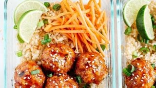 Honey Sriracha Glazed Meatballs Mealprepsunday - Serve over rice or cauliflower rice and you've got an amazing lunch to enjoy all week long.