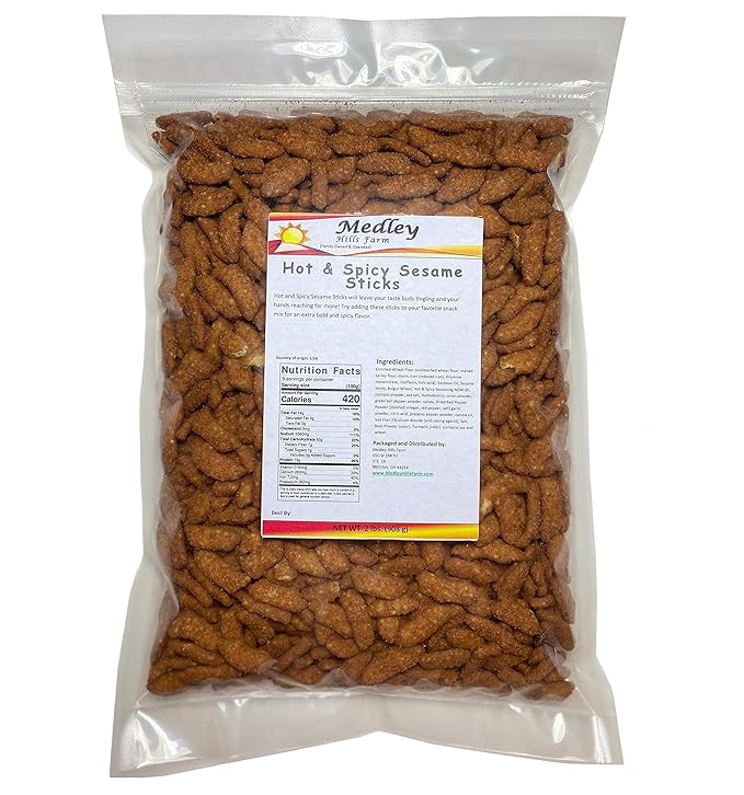 Hot And Spicy Sesame Sticks Hot And Spicy Sesame Sticks - 10055 pack:2/2.75lb or 6.8kg bulk w e offer many types of snack mixes and snack items.