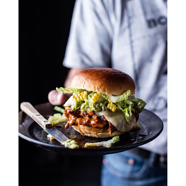 Pulled Pork Guacamole Pulled Pork Guacamole - * ha sa pa pulled pork, guacamole og ost pa fire av brodskivene.