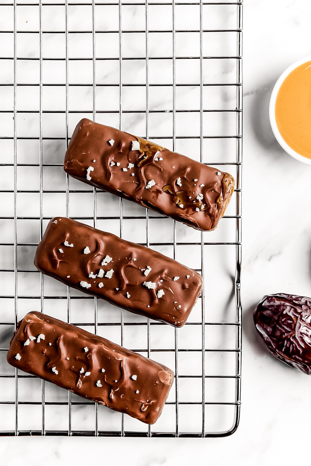 Healthy Snickers Bars Vegan 6 Ingredients From My Bowl - 250 calories, 12 g fat, 4.5 g saturated fat, 33 g carbohydrate, 27 g sugars, 4 g protein.