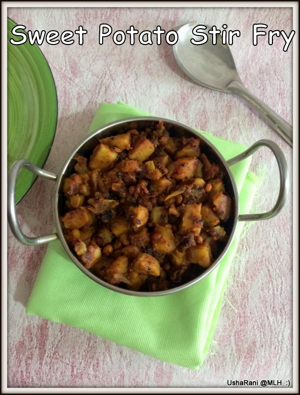 Sweet Potato Stir Fry Indian : Add green chilly and curry leaves.