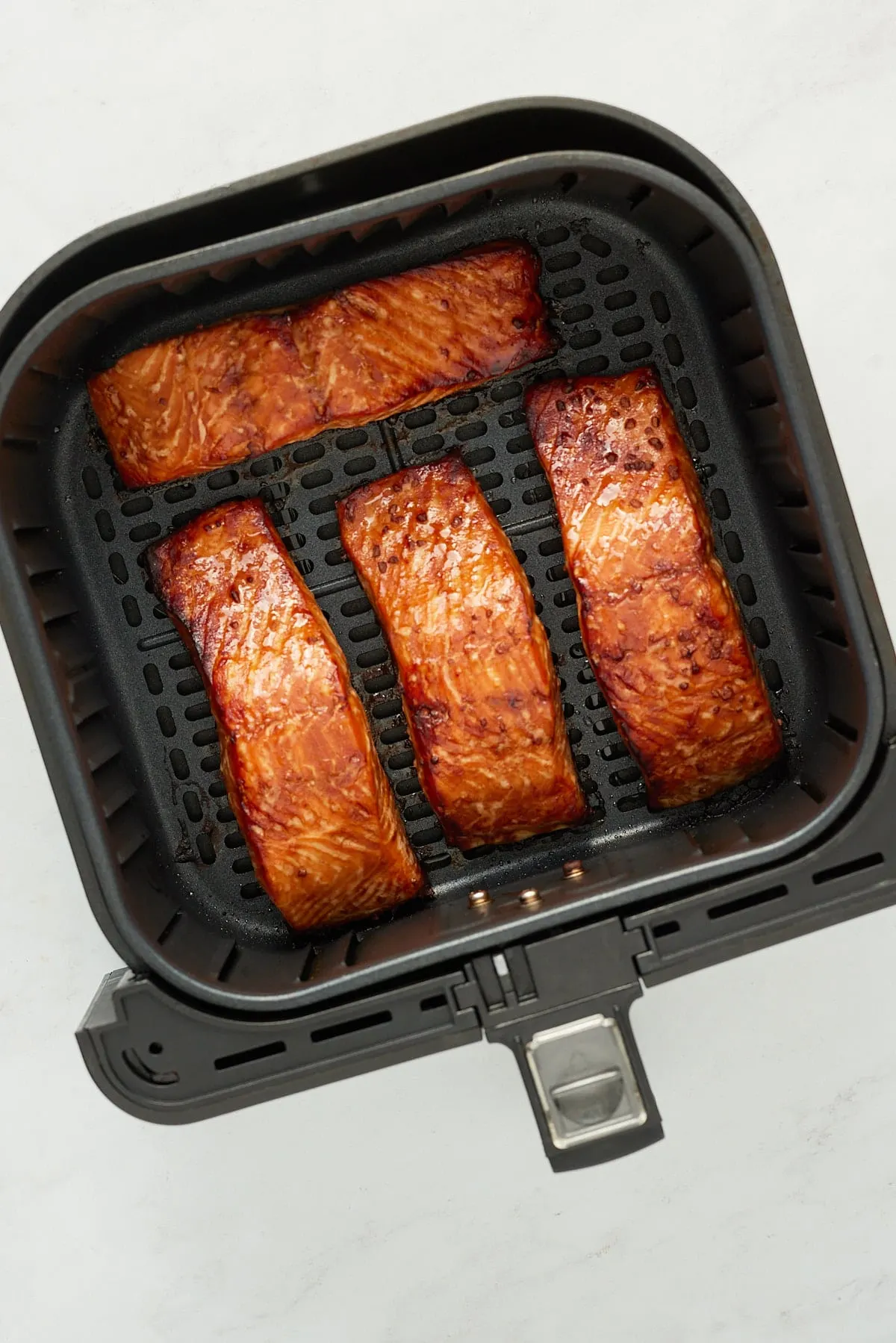 Teriyaki Salmon Air Fryer Teriyaki Salmon Air Fryer - Squeeze air out of the bag, seal, and marinate the salmon steaks for at least 1 hour (2 hours for better flavor).